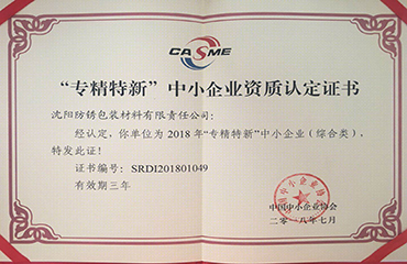 Recently, it was certified by the China Small and Medium Enterprises Association to grant the Shenyang Anti-rust "2018 "Speciali...